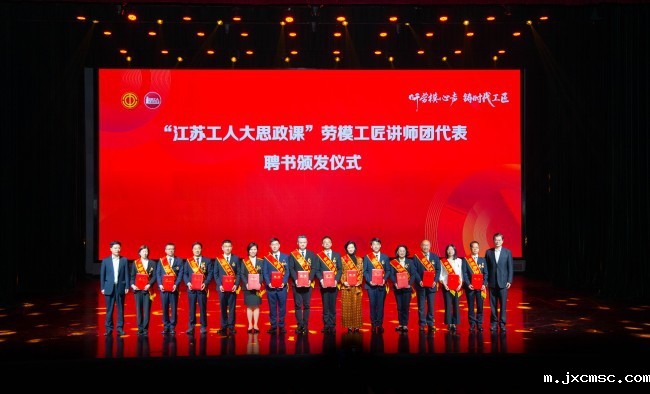 活动中,魏国强和刘月科为从北京载誉归来的14位劳模先进颁发“江苏工人大思政课”劳模工匠讲师团讲师聘书。全国劳模、大国工匠培育对象、启东中远海运海洋工程有限公司海工与新能源研发中心电气室主任黄剑宣读了《紧跟核心坚定前行立足岗位建功立业——江苏省2025年全国劳动模范和先进工作者倡议书》。