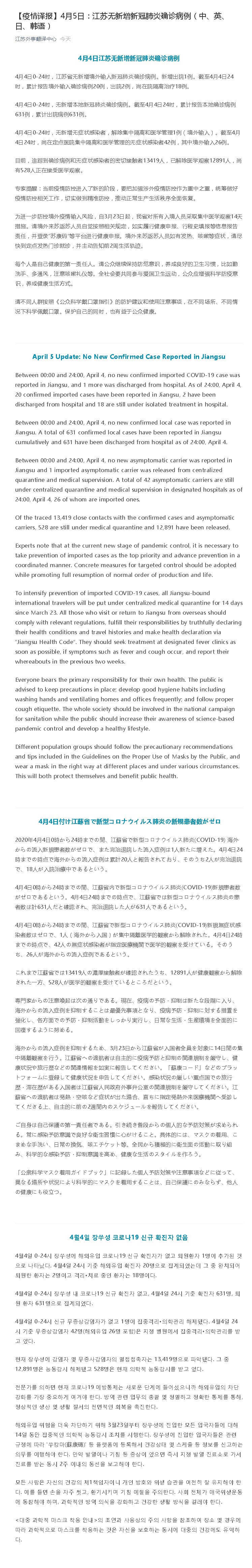 April 5 Update: No New Confirmed Case Reported in Jiangsu