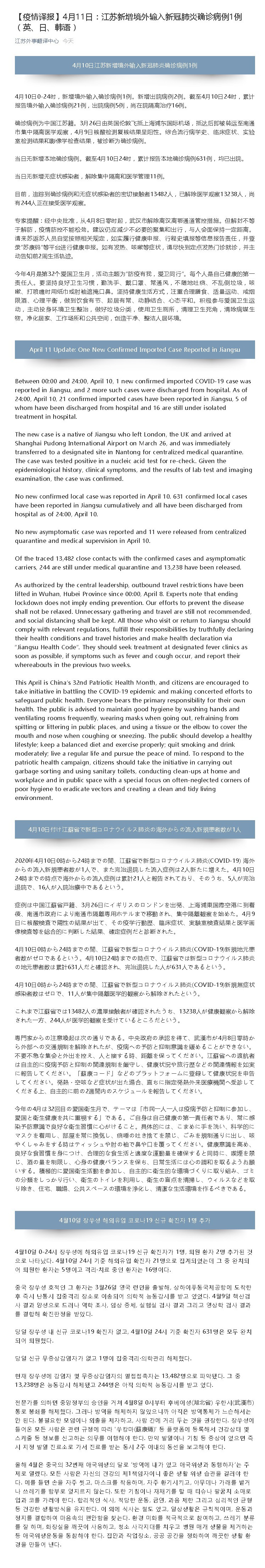 April 11 Update: One New Confirmed Imported Case Reported in Jiangsu