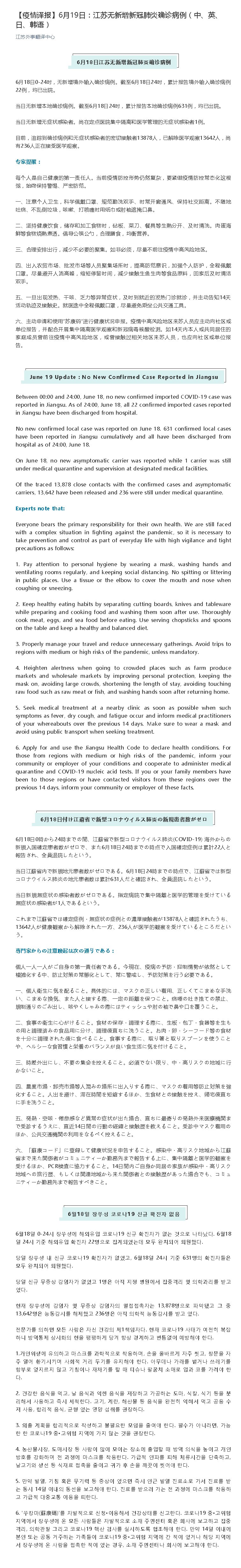 June 19 Update:No New Confirmed Case Reported in Jiangsu