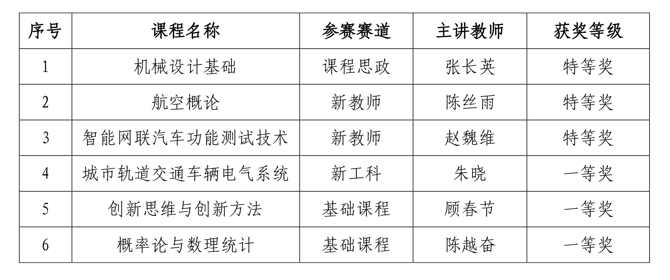 近日,江苏省高等教育学会发布第五届江苏省高校教师教学创新大赛获奖名单。根据学会分配名额,我校共选送8个优秀作品参赛,经过网络评审、现场汇报两轮激烈角逐,获得特等奖3项,一等奖3项。其中机械工程学院张长英、航空工程学院陈丝雨、交通工程学院赵魏维等3位主讲老师作品荣获特等奖,交通工程学院朱晓、创新创业学院顾春节、公共基础课部陈越奋等3位主讲老师作品荣获一等奖。