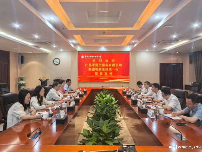8月15日,江苏省通信服务有限公司副总经理杨建明一行来校调研交流并洽谈合作,我校党委副书记、校长何学军在行政楼辅楼一楼会议室接待了来宾一行,学校科技处、发展合作处副处长宣慧,电子信息工程学院/集成电路学院党委书记、院长杨燕以及相关负责同志热情接待并参与了此次交流洽谈。