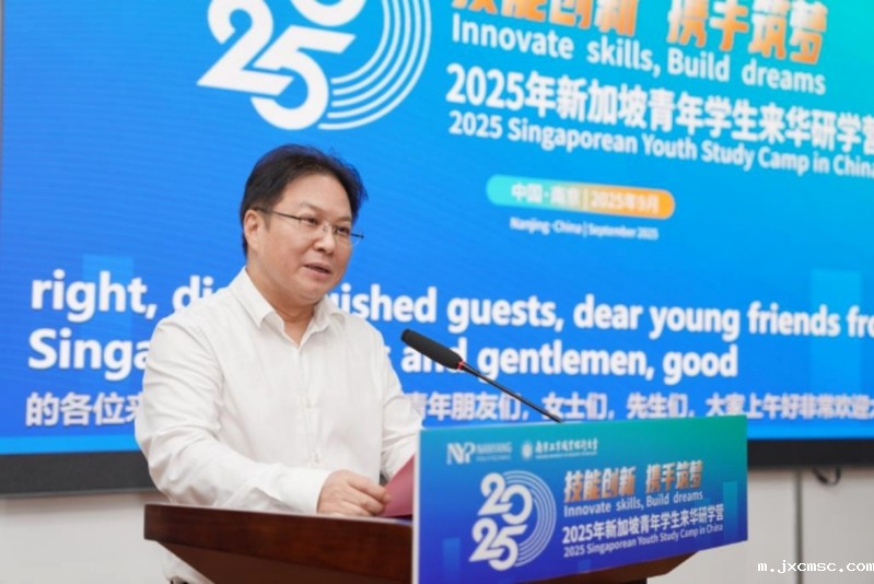 何学军代表学校向远道而来的新加坡青年学生表示热烈欢迎。他指出,2025年正值中新建交35周年,本次研学营是两国友谊薪火相传、教育合作不断深化的生动体现。他向新加坡师生介绍了我校作为“中国第一所职业学校”和“中国第一所公办本科层次职业大学”的历史沿革以及国际化办学成效。他希望,本次研学营能成为双方学生相互学习、交流思想的宝贵平台,让同学们通过亲身参与专题研讨、参访企业和科研中心,直观感受一个充满活力、勇于创新的中国,并借此机会在“六朝古都”南京结下友谊、留下珍贵回忆,为未来两校的深入合作搭建桥梁。