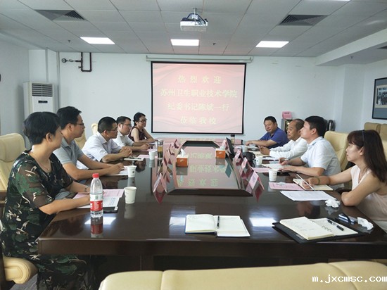 9月19日,苏州卫生职业技术学院纪委书记陈斌等一行来我校进行工作交流。我校党委副书记苏小冬、纪委书记于林惠、组织部长高宏彦及纪委办同志接待了来宾。