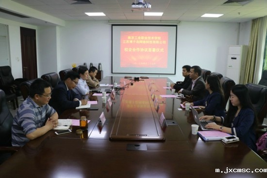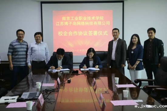 4月27日上午,江苏博子岛网络科技有限公司赵峥涞董事长一行来我校洽谈交流校企合作事宜。学校副校长崔新明、南京南工院科技园管理有限公司董事长兼总经理翟吉和、商务贸易学院副院长阮晓文、电子商务技术教学部主任谢吉刚出席了签约仪式。