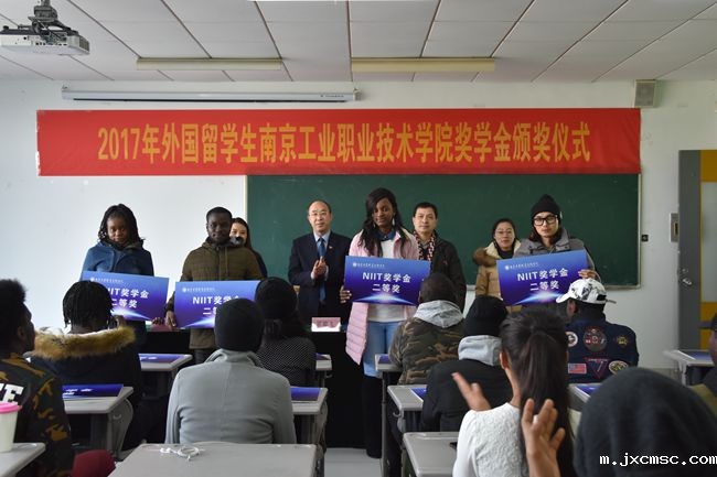 2015年起,我校开始招收学历留学生,截止到目前,已有来自韩国、孟加拉、缅甸、东帝汶、喀麦隆、刚果布、刚果金、加纳等24个国家的252名留学生在我校学习机电一体化、电子信息工程、软件工程、国际商务、旅游管理和汉语言。学校在“国际知名”的目标上,又迈进了一大步。为表彰先进,树立典型,2017年,共评选出26名来华留学生南工院奖学金获得者,其中汉语(春)1719班NURSANA ABDIKHALYK同学获南工院奖学金一等奖;国商1519班MPIPELE FLORA IMMAC等4名同学获南工院奖学金二等奖;软件1519班KOUKA EUSEBE EROLL IANNIS等18名同学获南工院奖学金三等奖;汉语(秋)1719班AYOUB FELKAIR等3名同学获南工院服务先锋奖。