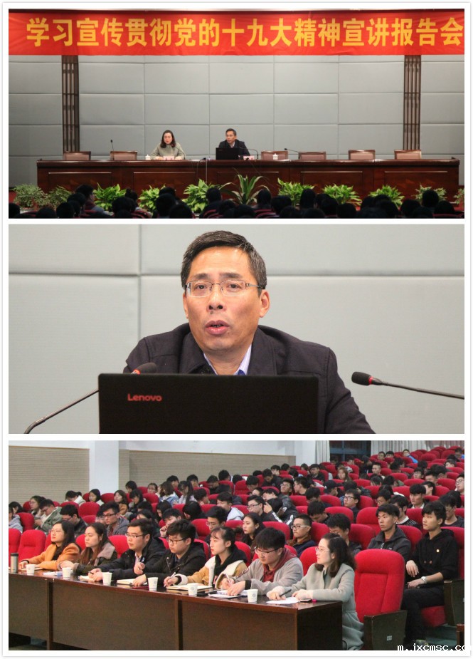 11月22日晚,我校2017年青年马克思主义者培训班暨精英人才学校创优示范培训班“深刻领会党的十九大精神”学习报告会在学术交流中心报告厅举行。本次报告会邀请到教育部学习宣传贯彻党的十九大精神“百人宣讲团”成员、“长江学者”特聘教授、南京师范大学人文社会科学研究院院长、博士生导师王永贵教授主讲。团委老师、各学院团总支书记、青马班学员、创优示范班学员、各学院学生干部代表近300余人参加了报告会。讲座由校团委副书记黄滢主持。
