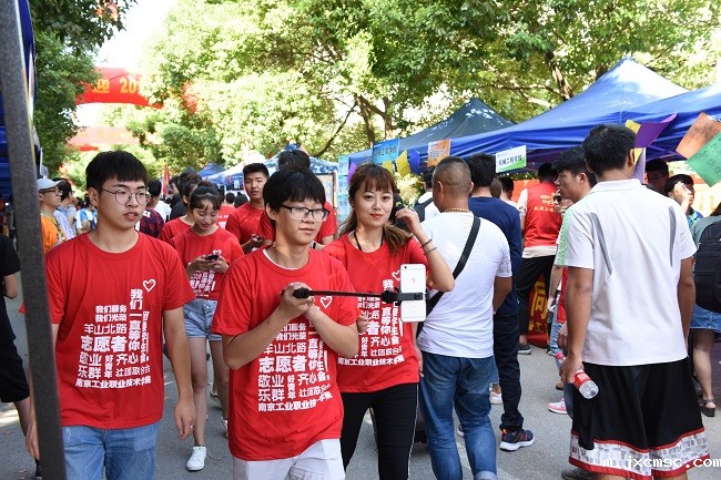 在学校西门、南门、黄炎培广场、学生公寓和羊山公园地铁站等校内外迎新点处处可以看到志愿者们在积极的引导、接待新生和家长,他们细致、周到的服务为广大新生送上了学校团学组织的温暖。此外,今年校学生会还首次采用“学长学姐带你逛校园”+全景航拍网络直播的方式现场报道我校迎新盛况。与此同时,在第十六届大学生社团巡礼节暨科技活动月开幕式现场,72个学生社团开展了丰富多彩的特色品牌活动,特别是基于半导体的汽车空调、3D打印机等科创作品展示以及吉他社动感rap表演、书法协会书法表演,吸引了同学们的驻足参观,现场互动交流气氛热烈,广受新生及家长们的好评。